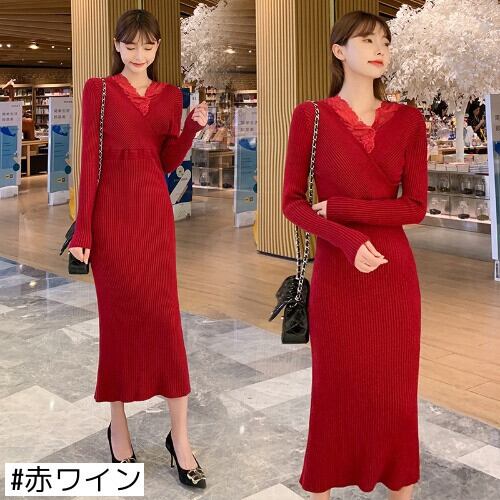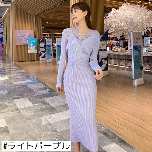 フレンチティーブレイクジェントルウィンドピュアデザイアセータードレスミドル丈スリムフィットスリム気質女神ファンニットドレス女性 yingd4202889218