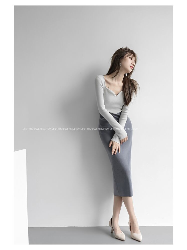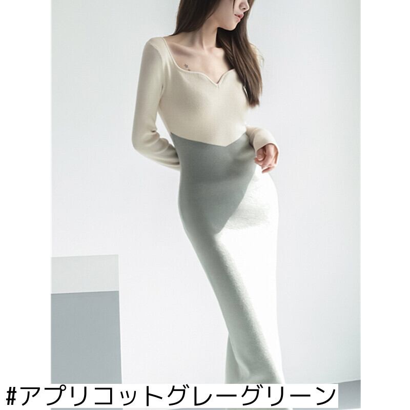 シックなハイエンドボトミングバッグヒップセータースカートミドル丈スリムフィットとスリム気質コントラストカラーニットワンピース秋冬 オータム 秋物 ウィンター 冬物 yingd24846842827