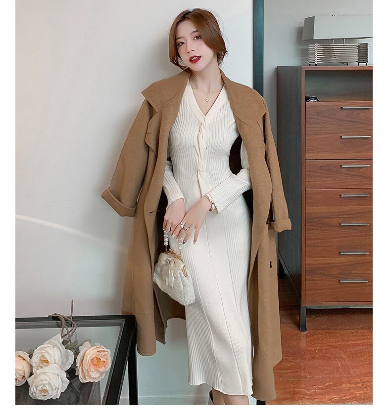 人気の爆発スカート女性の秋冬ウエストスリミング気質ハイエンドニットレッドドレスのシックなデザインセンス オータム 秋物 ウィンター 冬物 yingd40258327338