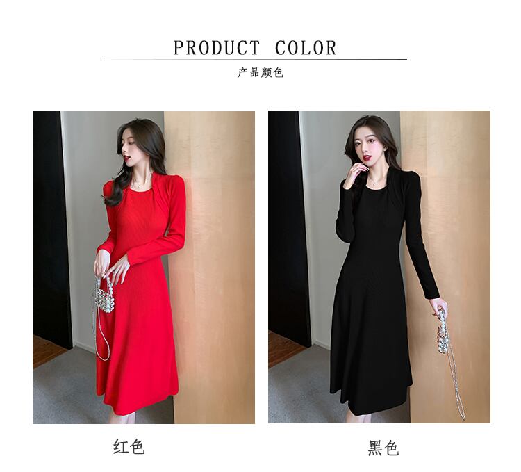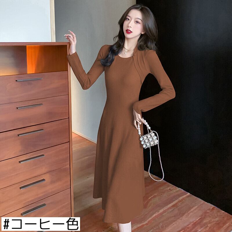 -今年人気のロイヤルシスター人気スカートウエストスリミングシックなデザインセンススクエアカラーニットワンピース女性 スクウェア yingd41477045410