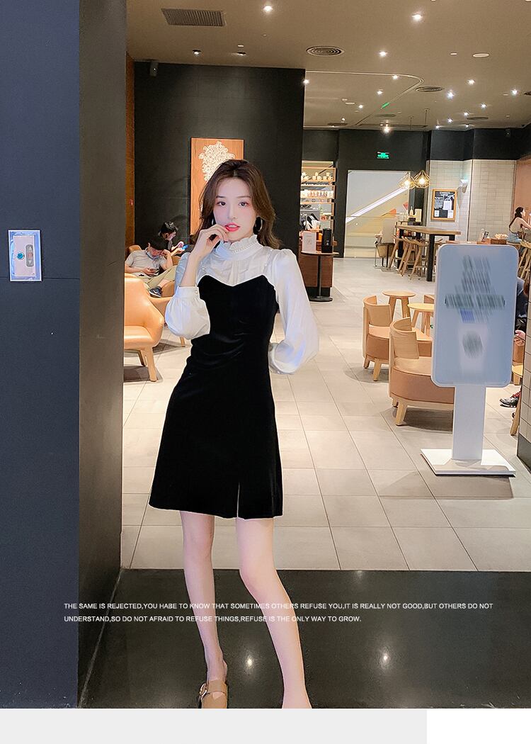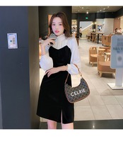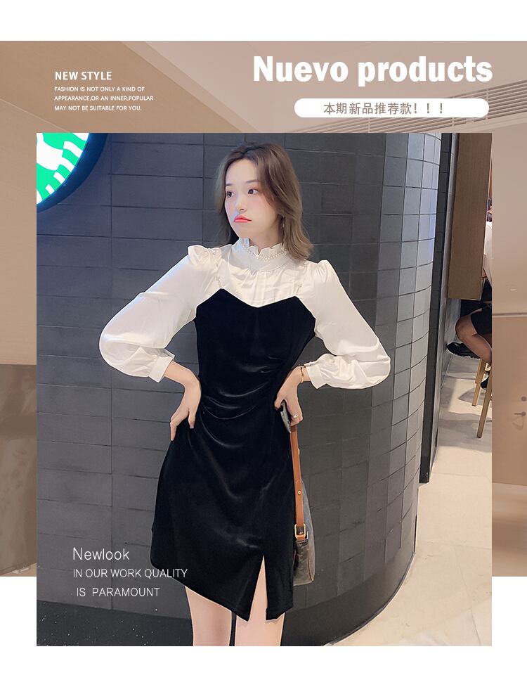 フランスのレトロなヘップバーンスタイルのウエストと薄い気質の女神ファンのハイエンドのセクシーなスリットドレスの女性と小さな黒いドレス ブラック yingd49241669435