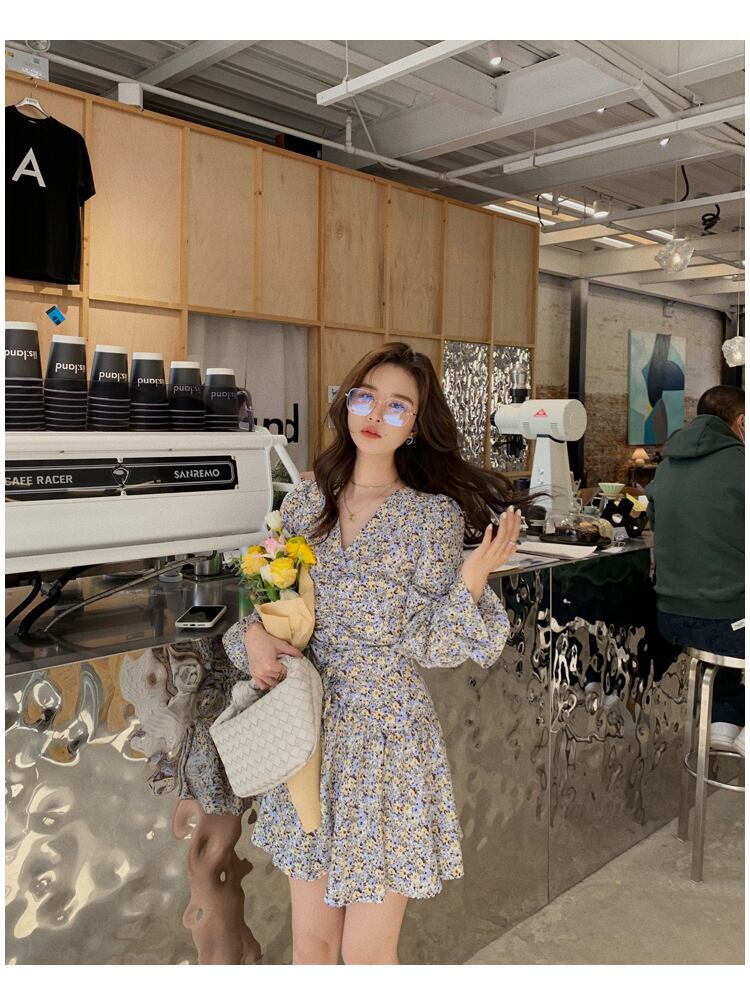 フランスのシフォン小さな花柄のドレス女性の春のドレス2021新しいウエストと細い気質のVネックヒョウ柄のスカート スプリング 春物 yingd30202101462