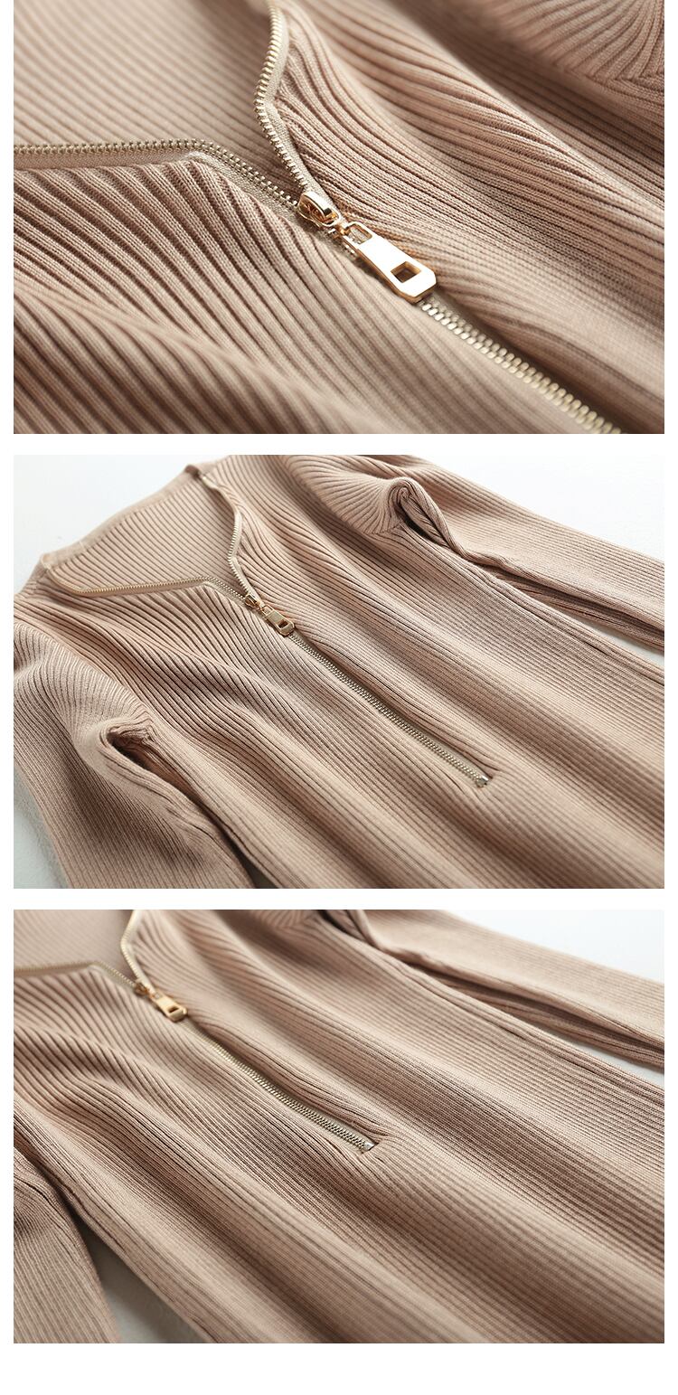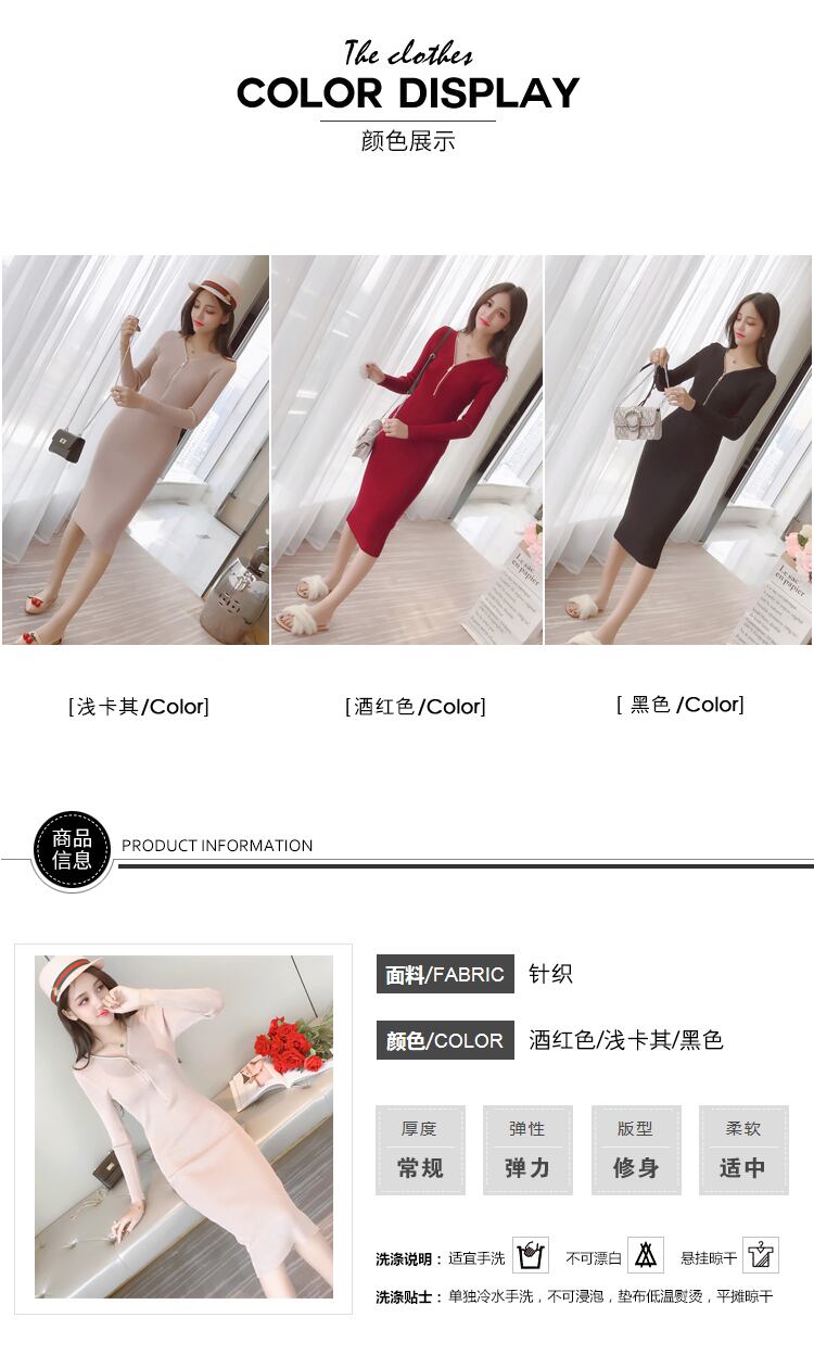 シックなデザインの高品質セータードレスミドル丈スリムフィットとスリム気質長袖ジッパーニットドレス秋冬 ロング オータム 秋物 ウィンター 冬物 yingd75536663588