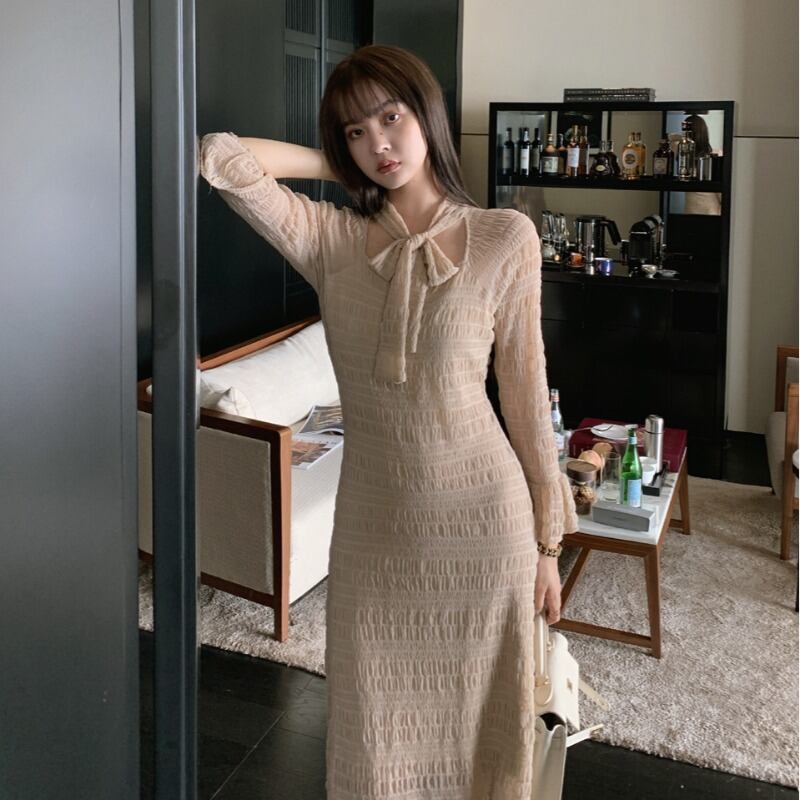 ロングスカートは薄くて気質の高い女神ファンデザインのスカートライトマチュアスタイル気質eignスタイル長袖ドレス女性秋 オータム 秋物 yingd75288067804