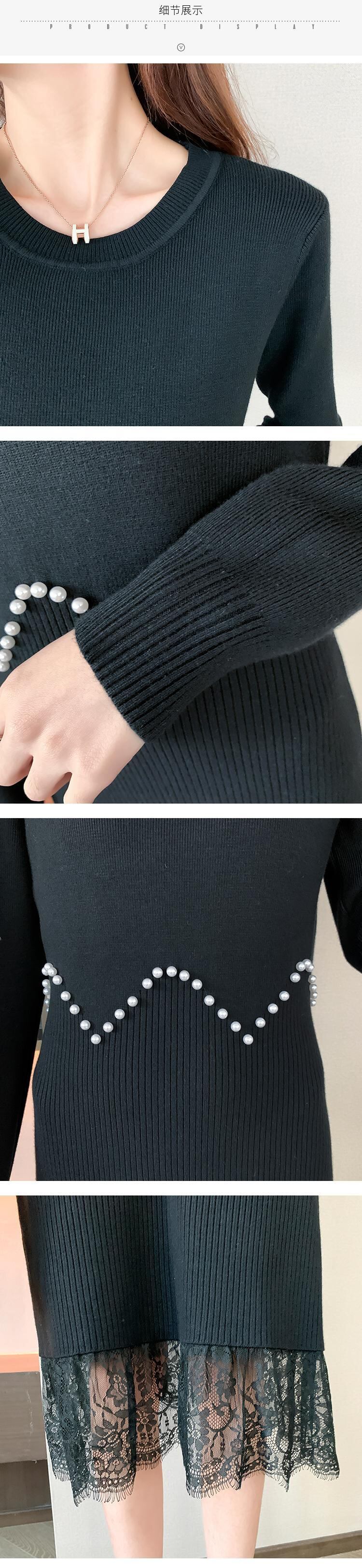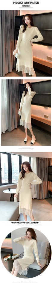 膝と腰にロングセータードレスを着て、薄手の気質を見せてくれます軽い高級レディースレースステッチニットドレス女性秋冬 オータム 秋物 ウィンター 冬物 yingd54700408765