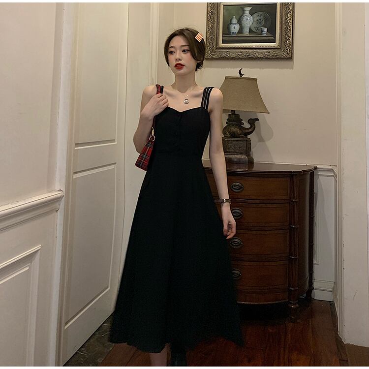 フランスのレトロなヘップバーンスタイルの黒のサスペンダードレス女性2021年夏の新しいデザインの小さなセクシーなサスペンダースカート ブラック サマー 夏物 yingd53522839735