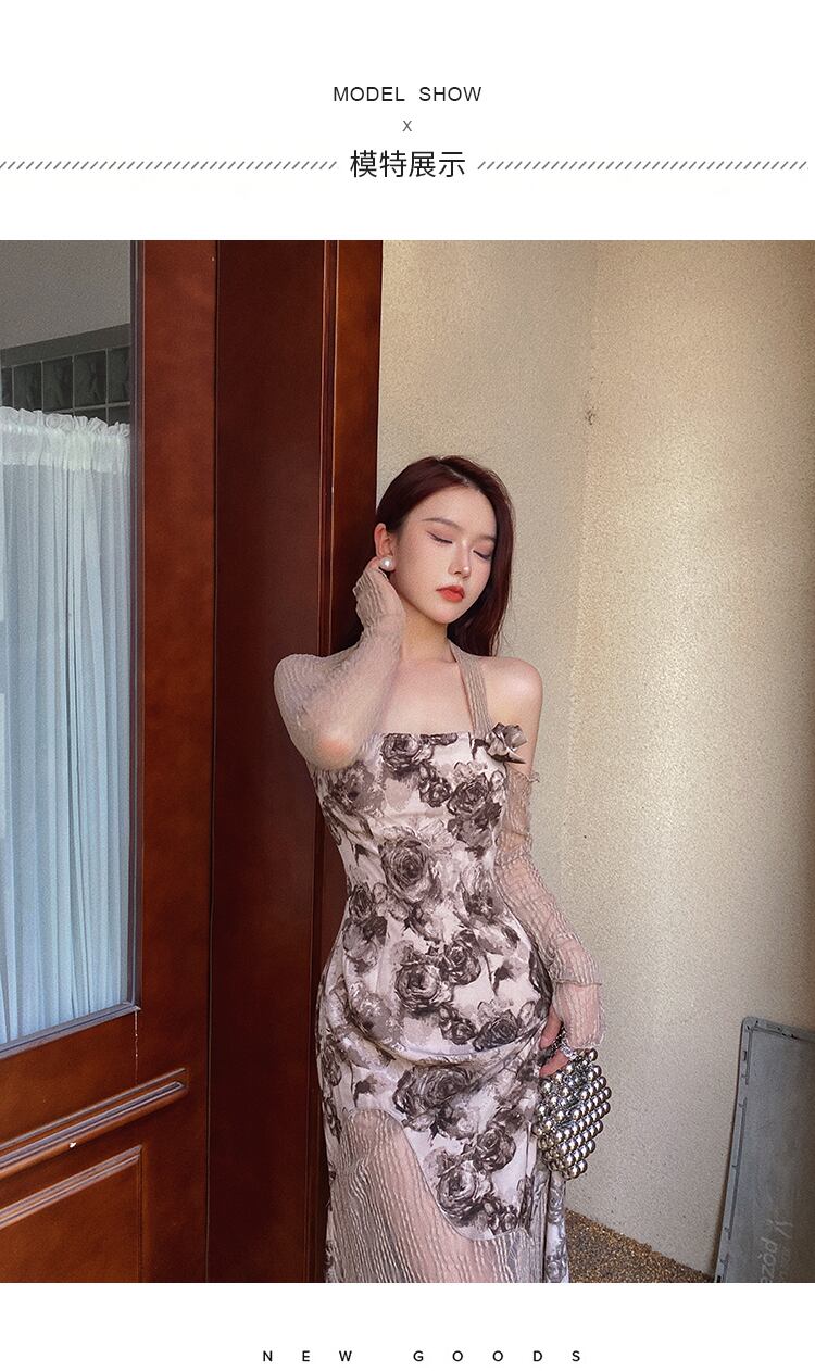 フランスの優しいスタイル純粋な欲望ティーブレイクスカートウエスト痩身シックなデザイン小さなオフショルダーのバラのドレス女性の秋 オータム 秋物 ピュア yingd24940156207