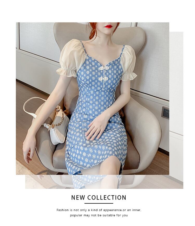 フランスのレトロなニッチウエストスリム気質の女神ファンVネックパフスリーブライトラグジュアリーレディースドレス女性の夏 サマー 夏物 yingd6627267293