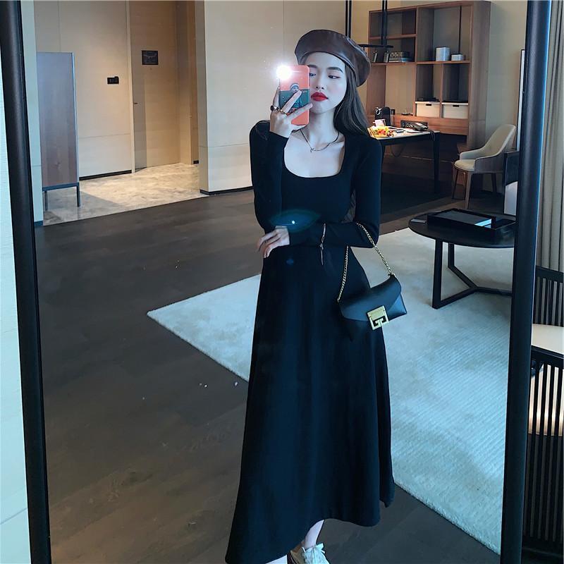 フレンチティーブレイクジェントルウィンドピュアデザイアロング膝上セータードレススリムフィットスリムフィットスクエアネックニットドレス女性 スクウェア yingd43280661353