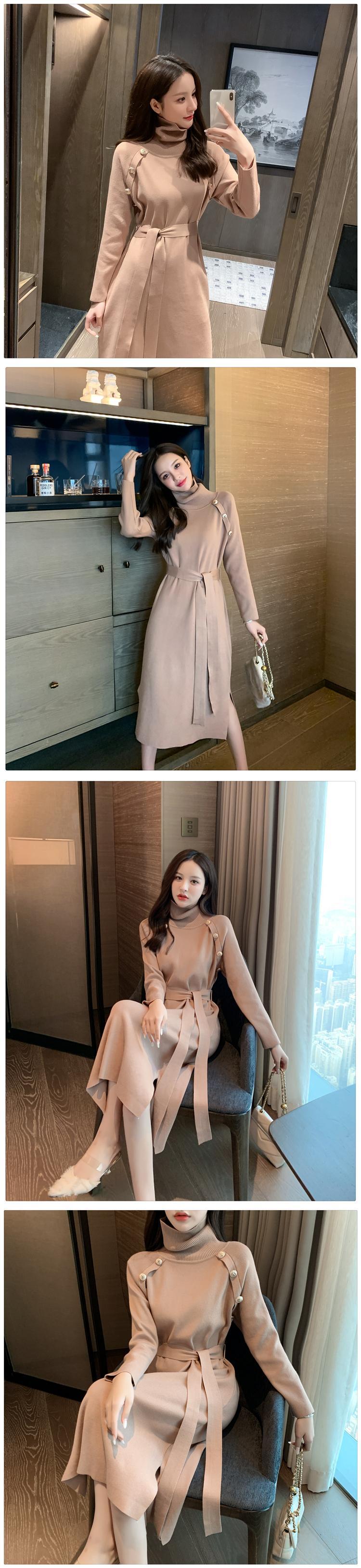 フランスのレトロなヘップバーンの長い膝上セータードレスはシックでハイエンドで、ハイネックのニットドレスの女性の秋と冬があります ロング オータム 秋物 ウィンター 冬物 yingd93407632488