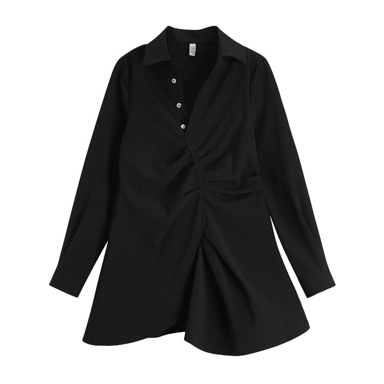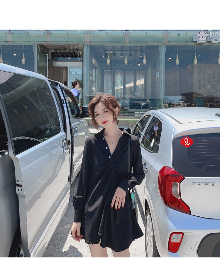 2019秋新作フレンチレトロデザインシャツワンピースレディースウエストスリム気質人気スカート オータム 秋物 yingd46577330254