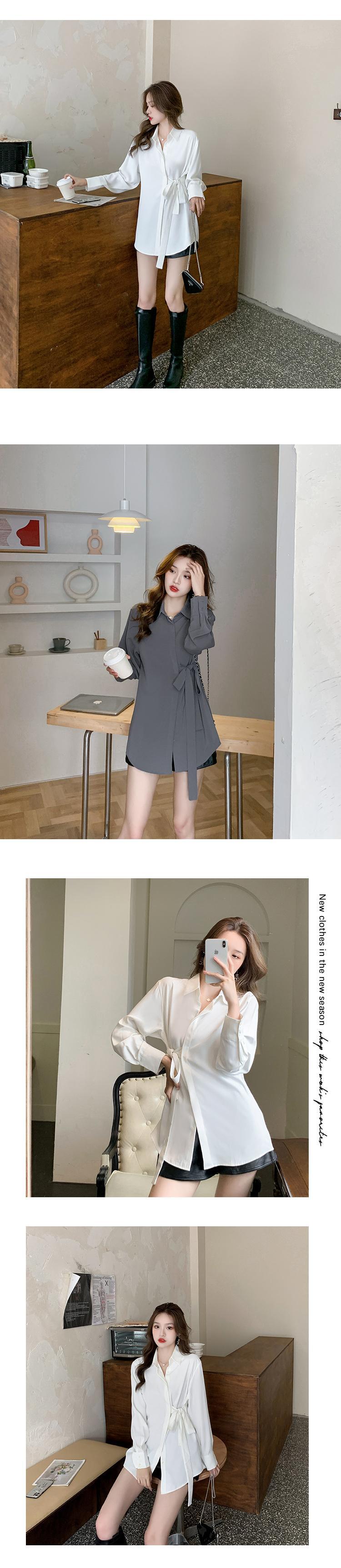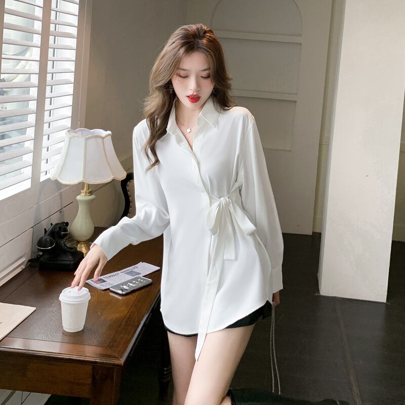 2021年秋新作フレンチデザインセンスニッチシフォンシャツレディーストップミドル丈長袖シャツレディースタイド ロング オータム 秋物 yingd46845611030