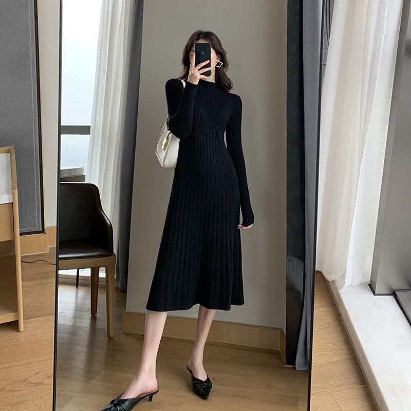 フランスのレトロなヘップバーンスタイルの黒のセータースカートミドル丈のスリムフィットとスリムな気質のインナーニットドレス秋と冬 ブラック オータム 秋物 ウィンター 冬物 yingd63583052609