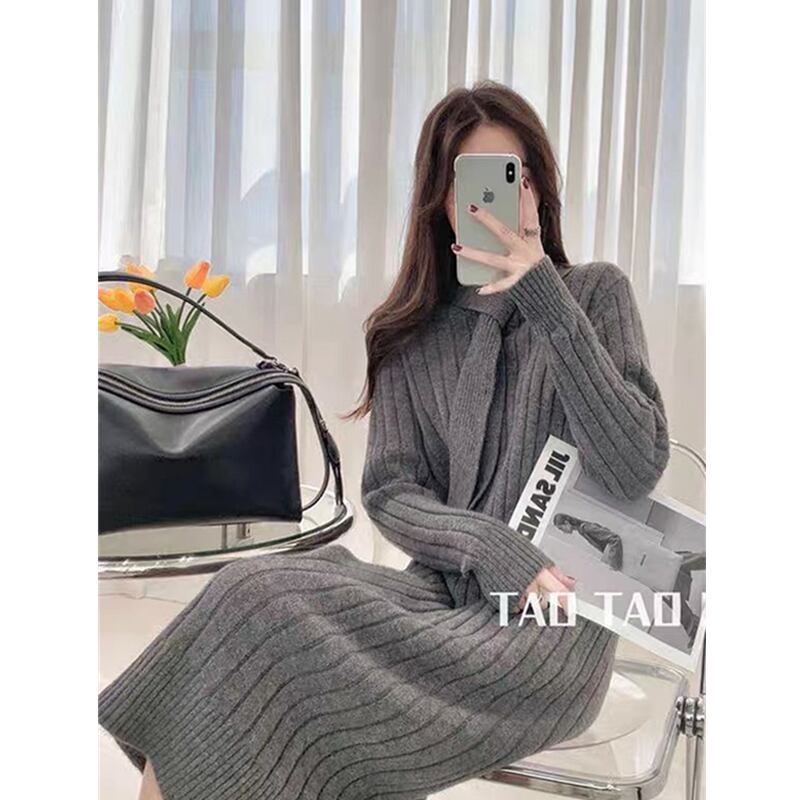 厚みのあるロング膝上セータースカートレディース秋冬ルーズで薄手の気質シックなハイエンドニットワンピースロングスカート オータム 秋物 ウィンター 冬物 yingd77322686492