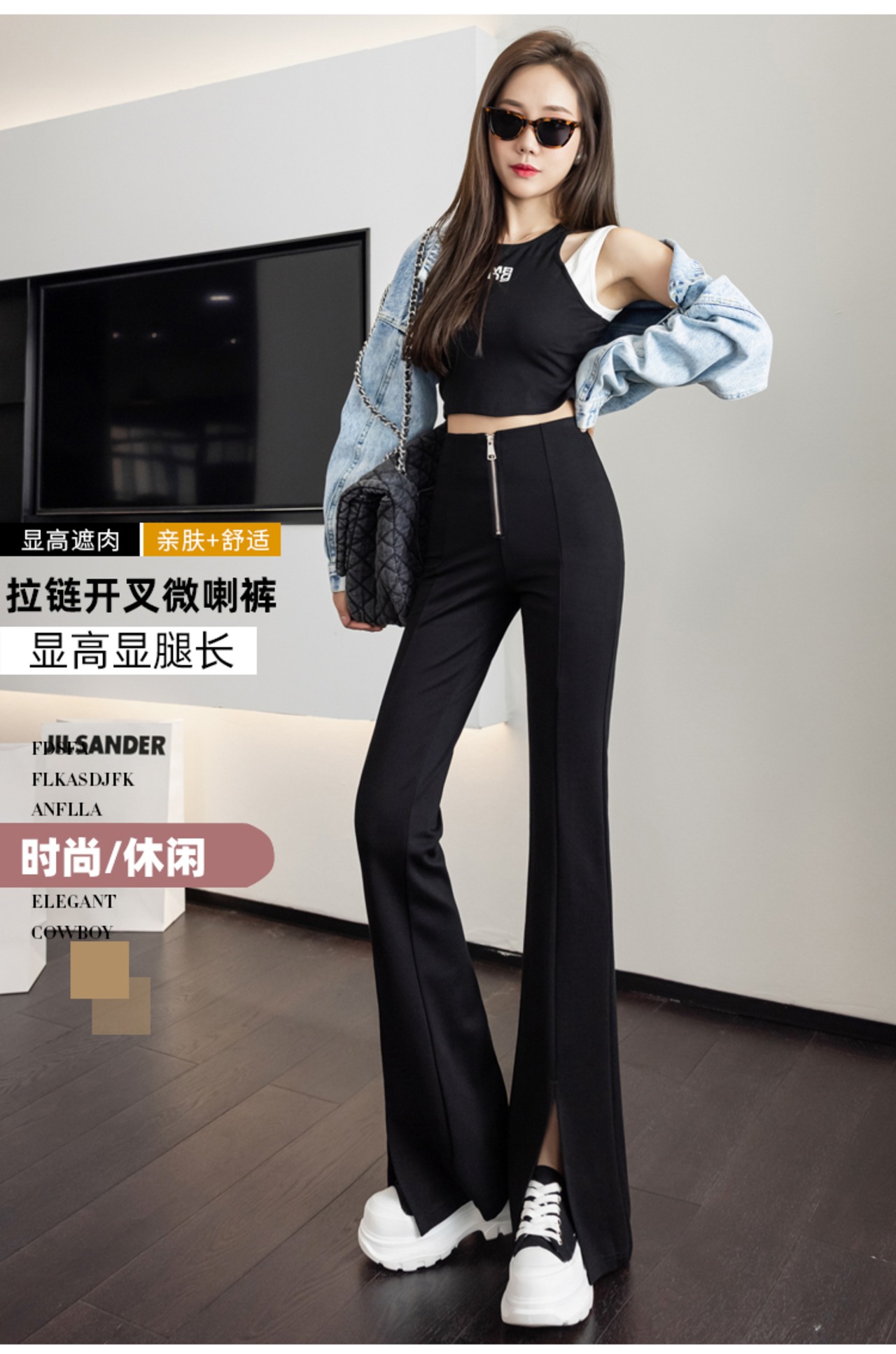 スプリットパンツスリムフィットマイクロフレアパンツレディース秋ワイドレッグパンツハイウエストドレープデザインニッチジッパーカジュアルパンツ ハイウェスト レッド オータム 秋物 ワイドパンツ yingd77557164469