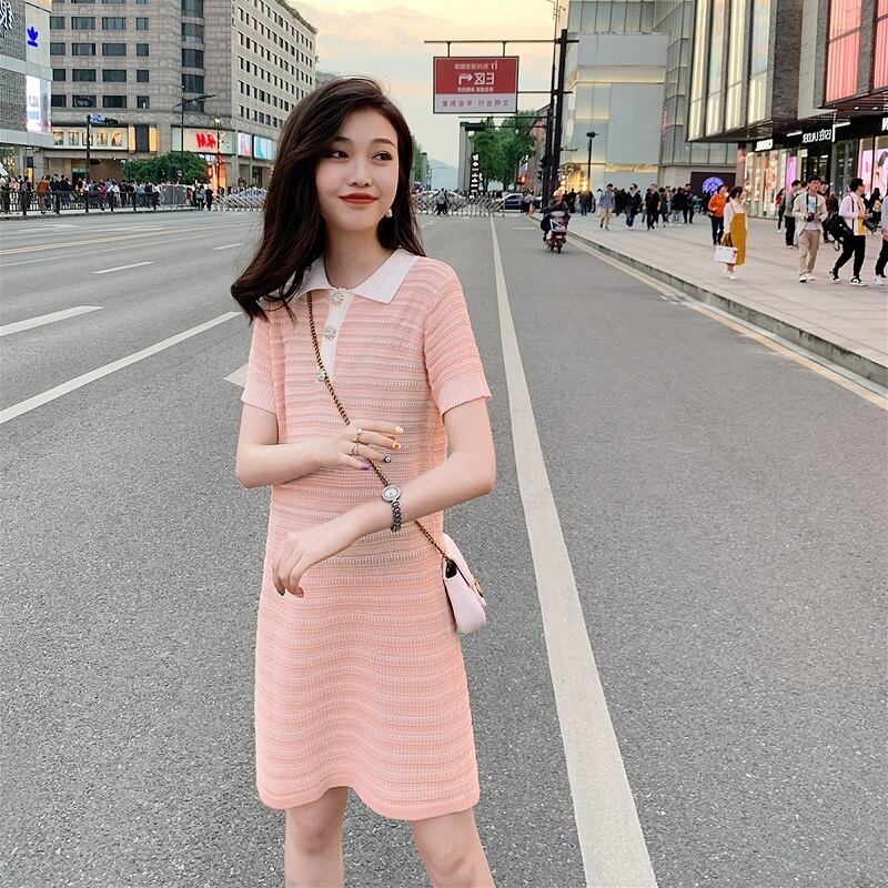 フランスのレトロなスマートスモークベルフラワースカート妖精スーパーフェアリーエスト気質女神ファンストライプニットドレス女性の夏 サマー 夏物 フラワーデザイン yingd17374025282