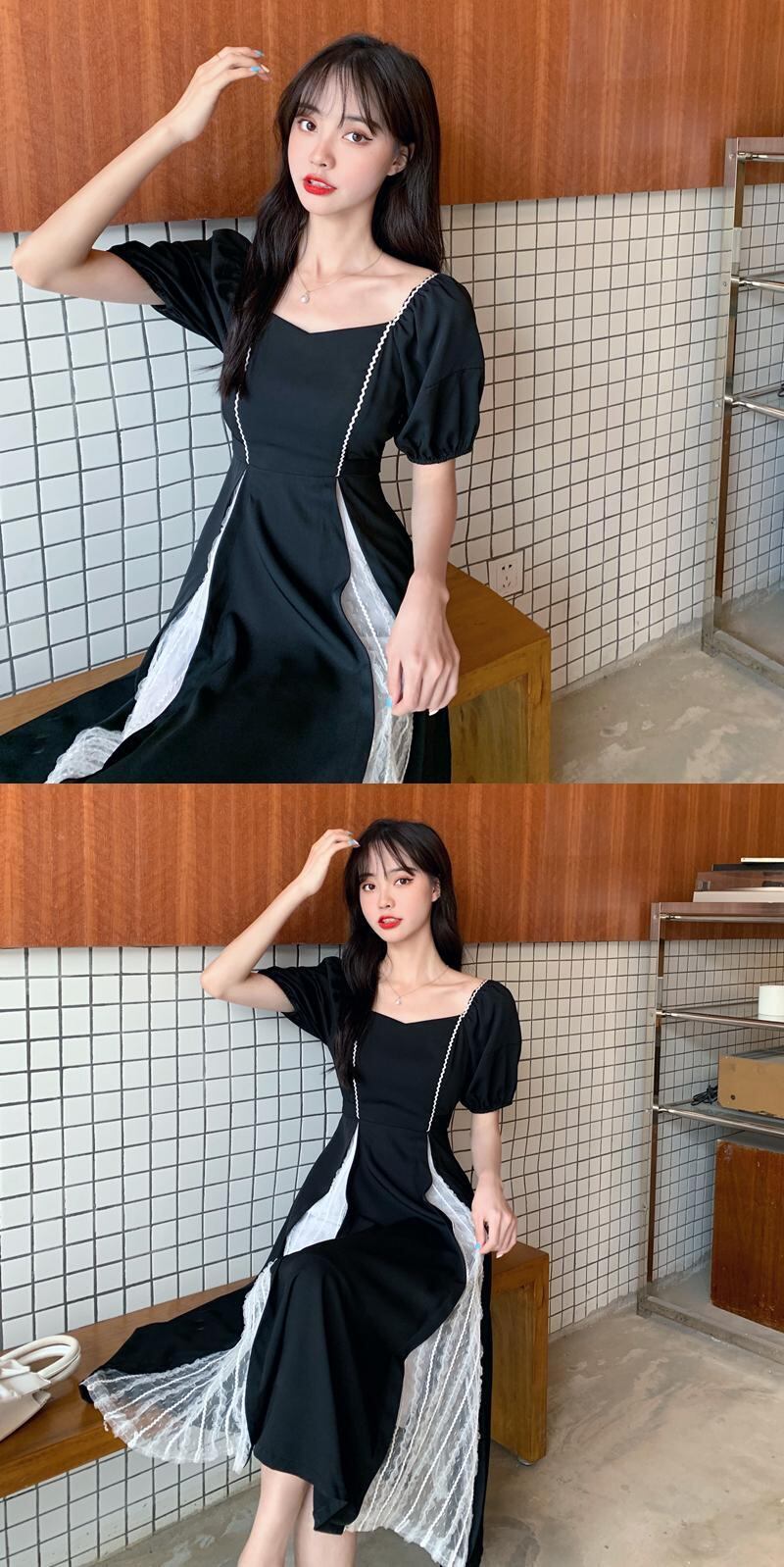 フランスのレトロなヘップバーンドレスサマーウエストスリム気質ライトラグジュアリーレディースハイエンドパフスリーブドレス女性 夏物 yingd81453442329