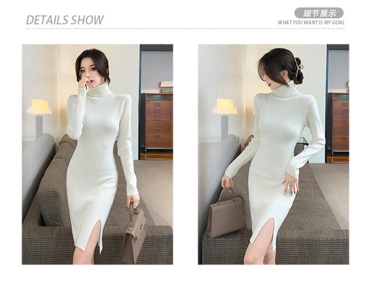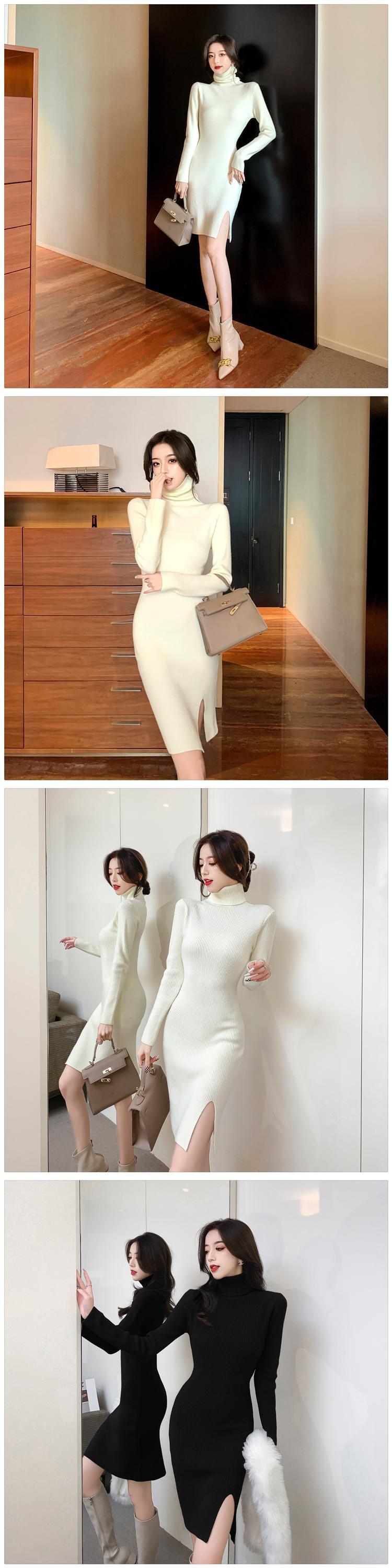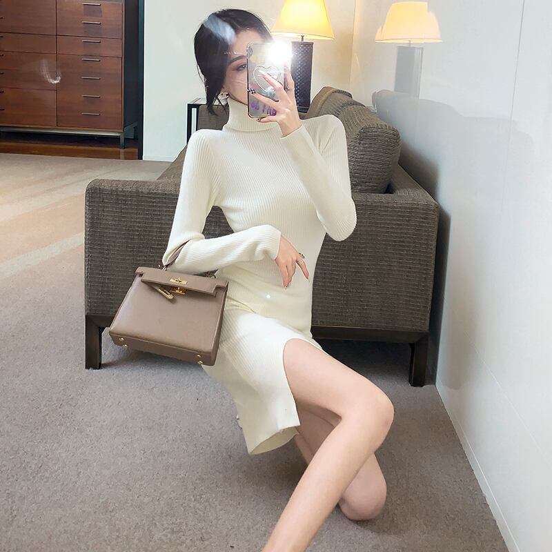フランスのシックなハイエンドセーター気質ロイヤルシスターファン女性のセクシーなパッケージヒップスリットタートルネックニットドレス女性 yingd7886151884