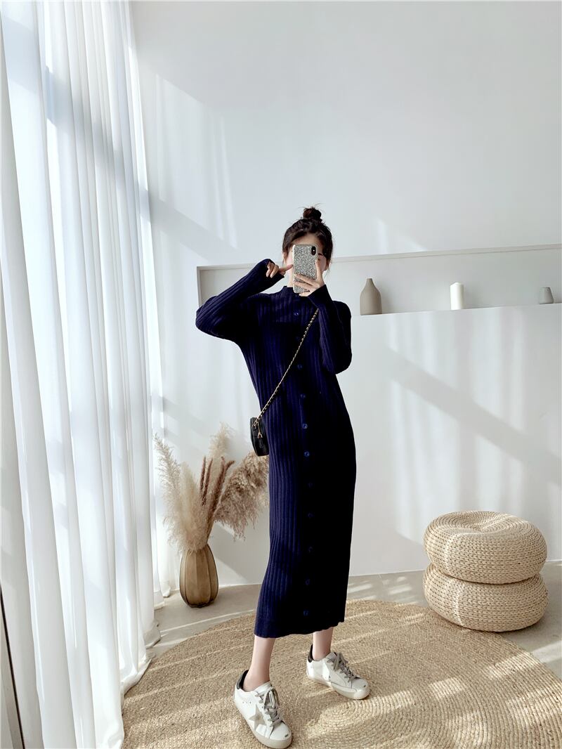 ロングオーバーザニータートルネックセータードレスルーズで薄いレイジースタイルのデザインハイエンドニットドレス秋冬 オータム 秋物 ウィンター 冬物 yingd93225609468
