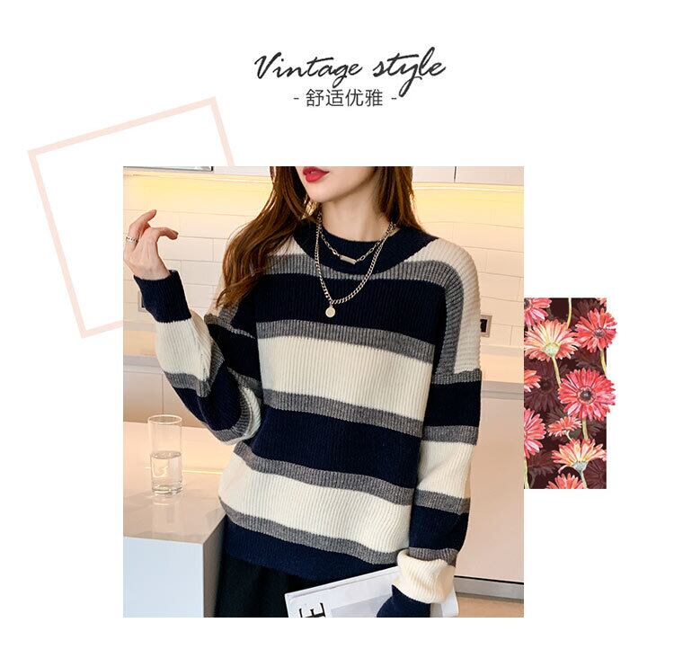 Retro ese Lazy Loose Sweater Women's Winter Small Contrast Color Striped Knit Sweater Women レトロ ウィンター 冬物 ストライプ yingd16711159832