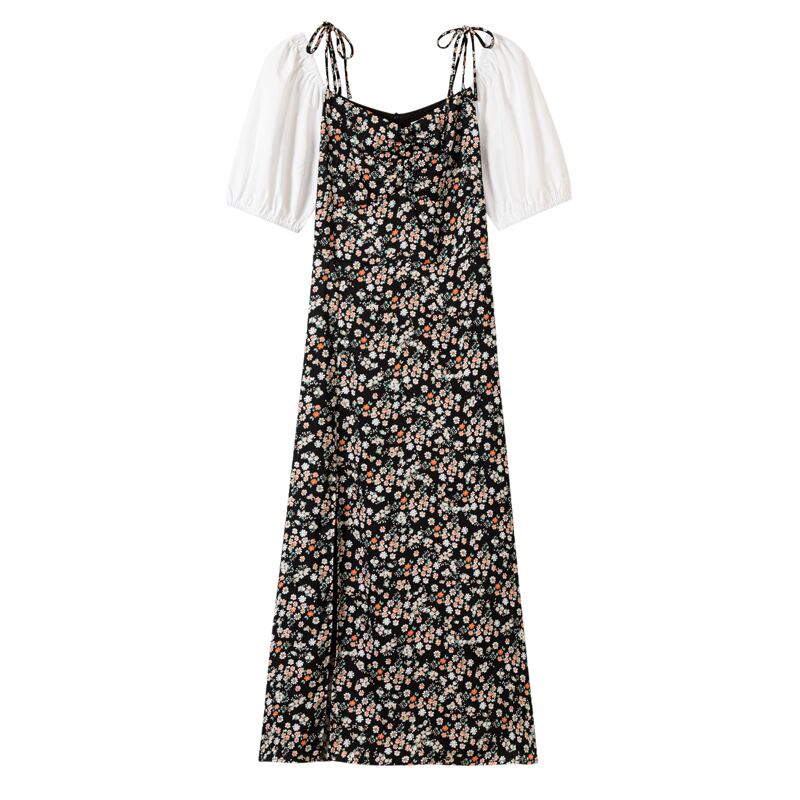フランスのレトロな優しいスタイルのティーブレイクベルフラワースカート気質セクシーなスプリットパフスリーブ花柄サスペンダードレス女性の夏 サマー 夏物 フラワーデザイン yingd1188431501