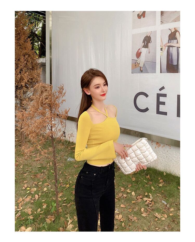 ショートトップレディース秋冬新デザインセンスホルターニットセーターレディース雰囲気センスフレアスリーブスリットボトミングシャツ レッド オータム 秋物 ウィンター 冬物 yingd25469284458