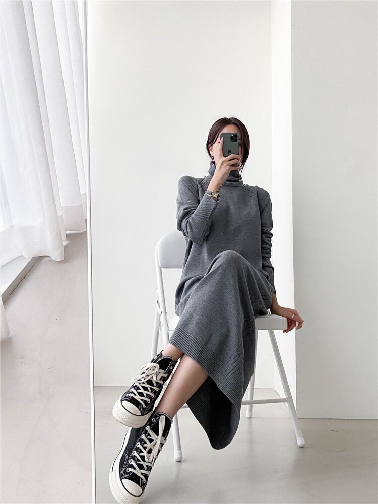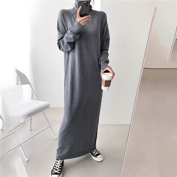-ネックの超ロング膝上セータードレス、ルーズで薄い、ストレートチューブボトミング、ニットドレス、女性の秋と冬のロングスカート オータム 秋物 ウィンター 冬物 yingd79527368958