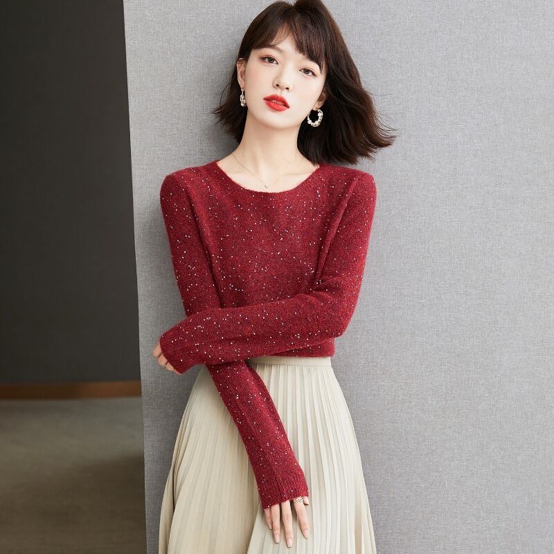 2021年秋新しいフランスのレトロな長袖ウールセーターウエスタンスタイルの年齢を減らすプルオーバースパンコールボトミングセーター女性 ロング オータム 秋物 yingd46582114632