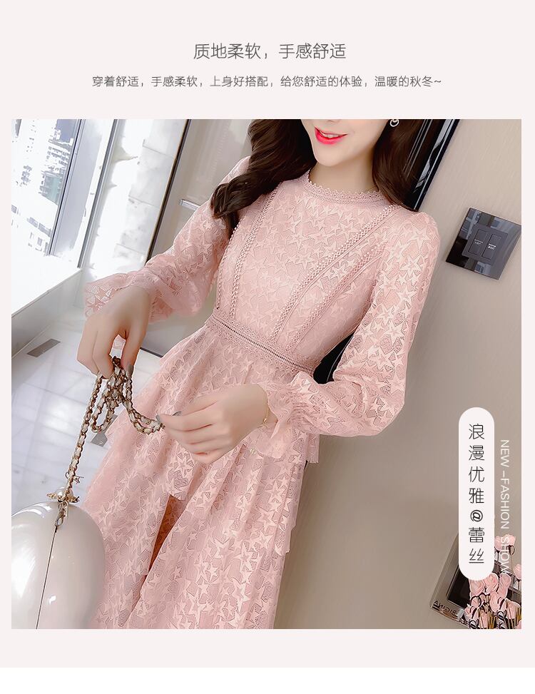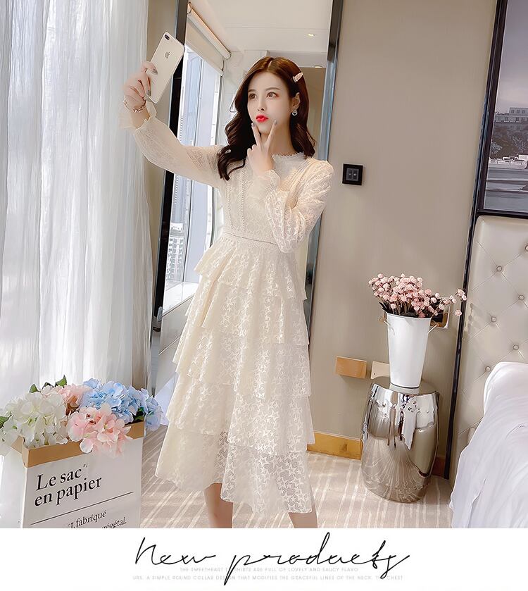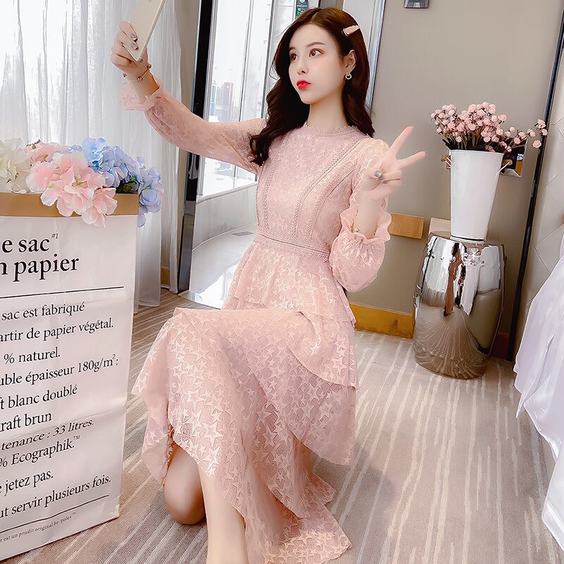 2021年秋新しい女性のウエストと薄い気質の女神ファンハイエンドの軽い豪華な長袖のレースのドレスの女性 ロング オータム 秋物 yingd6156692647