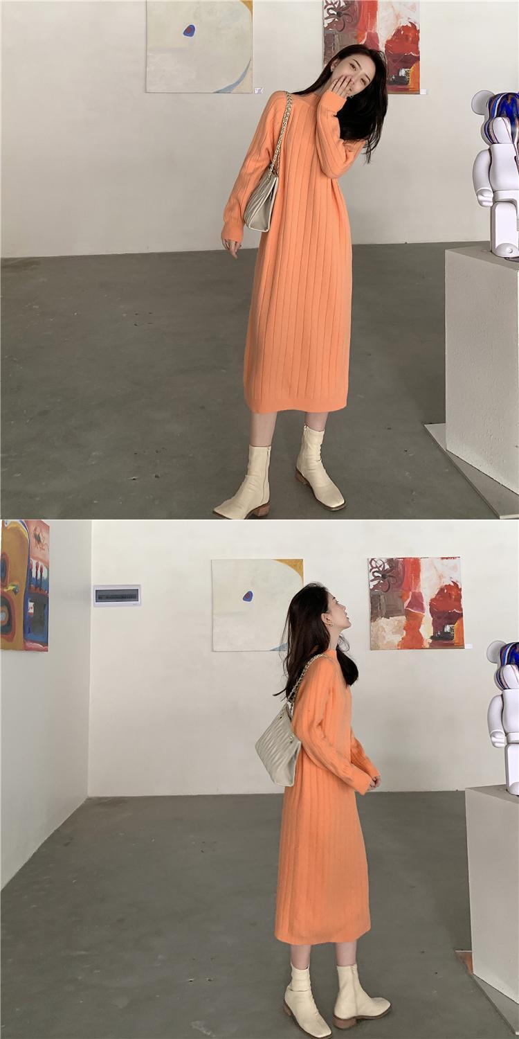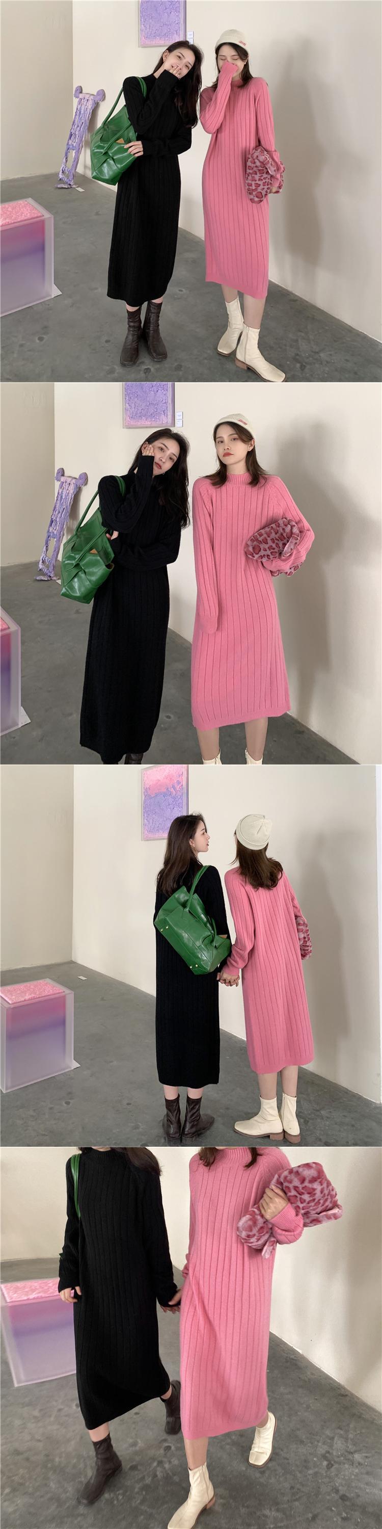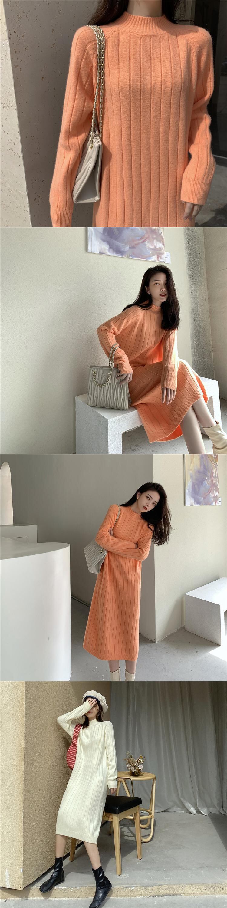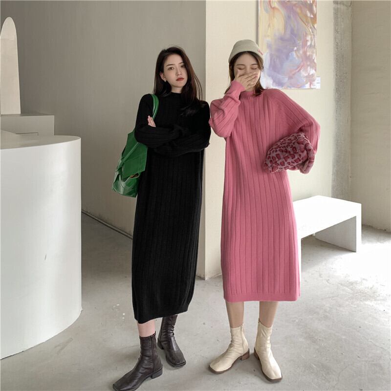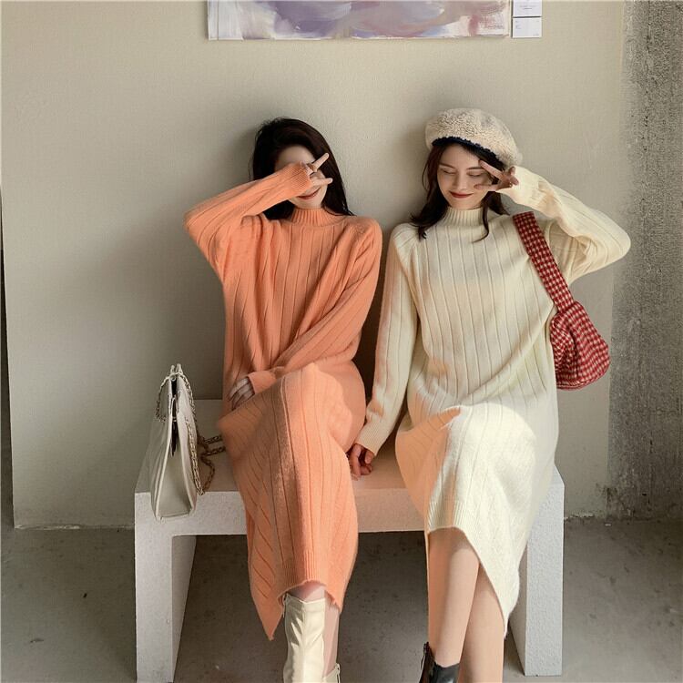ハーフタートルネックニットワンピースレディース秋冬気質女神ファンハイエンド優しい風ロング膝丈セータースカート オータム 秋物 ウィンター 冬物 yingd11537683562