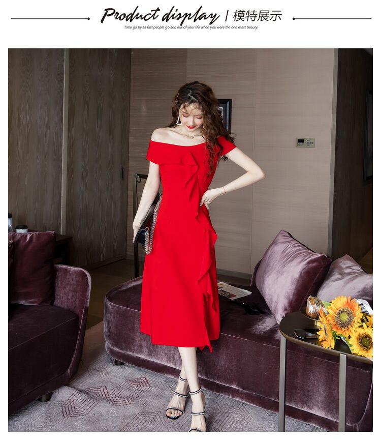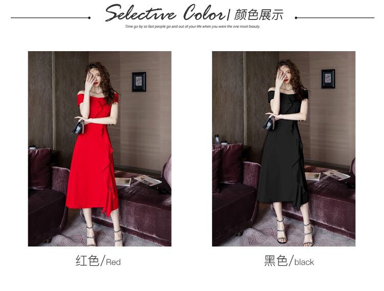 フランスのレトロなヘップバーンスタイルのロングドレス夏のシックなデザインセンスYujieライトおなじみのスタイルセクシーなワンショルダードレス女性の夏 サマー 夏物 yingd21664977601