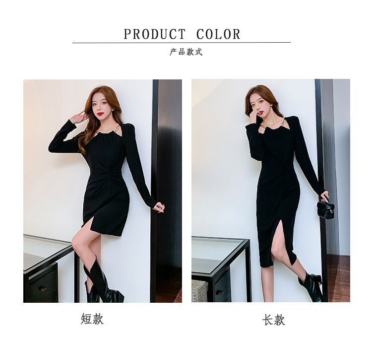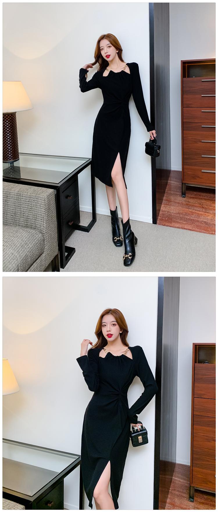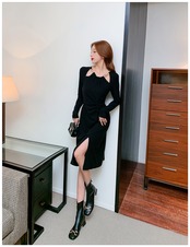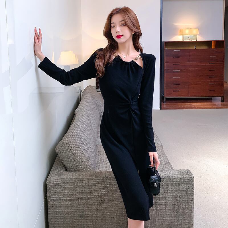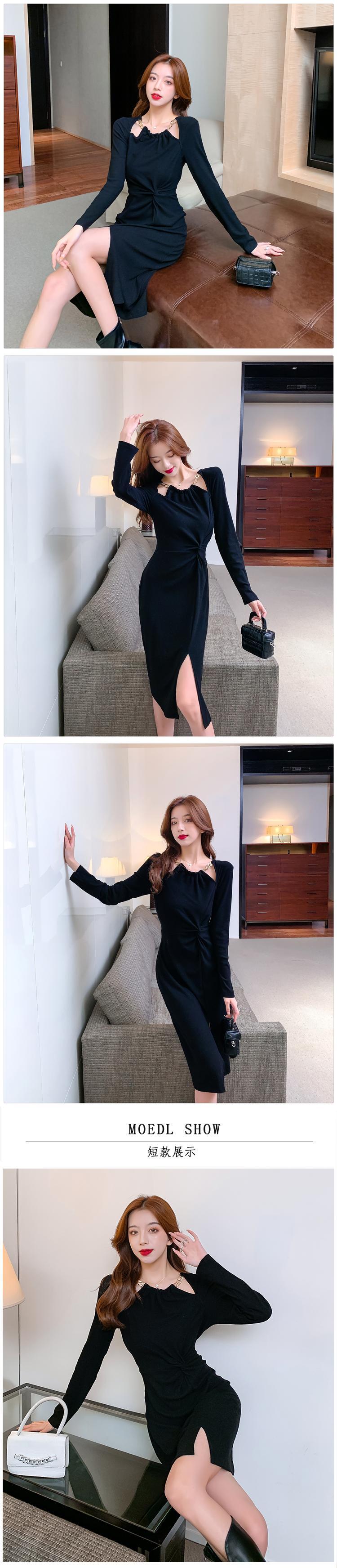 フランスのレトロシックなデザインのスカートウエスト痩身Yujieライトおなじみのスタイルセクシーなスプリットドレス女性秋と冬 オータム 秋物 ウィンター 冬物 yingd46111917750