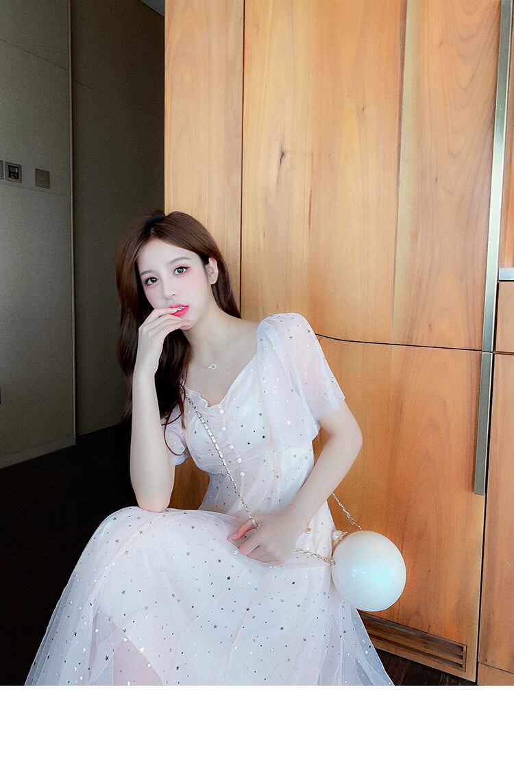 フランスのニッチ初恋妖精スカート超妖精エスト気質優しい風スパンコールメッシュ半袖ドレス女性夏 サマー 夏物 yingd46587406995