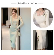 膝上ロングセータードレススリムフィットで薄手の気質の女神ファンゆじえライトおなじみスタイルパッケージヒップニットワンピース秋冬 オータム 秋物 ウィンター 冬物 yingd13823865779