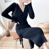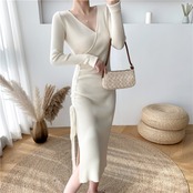 フレンチティーブレイクジェントルウィンドニットドレスレディース秋冬シックセンスライトマチュアウィンドロング膝上セータードレス オータム 秋物 ウィンター 冬物 yingd17055678000