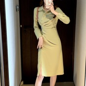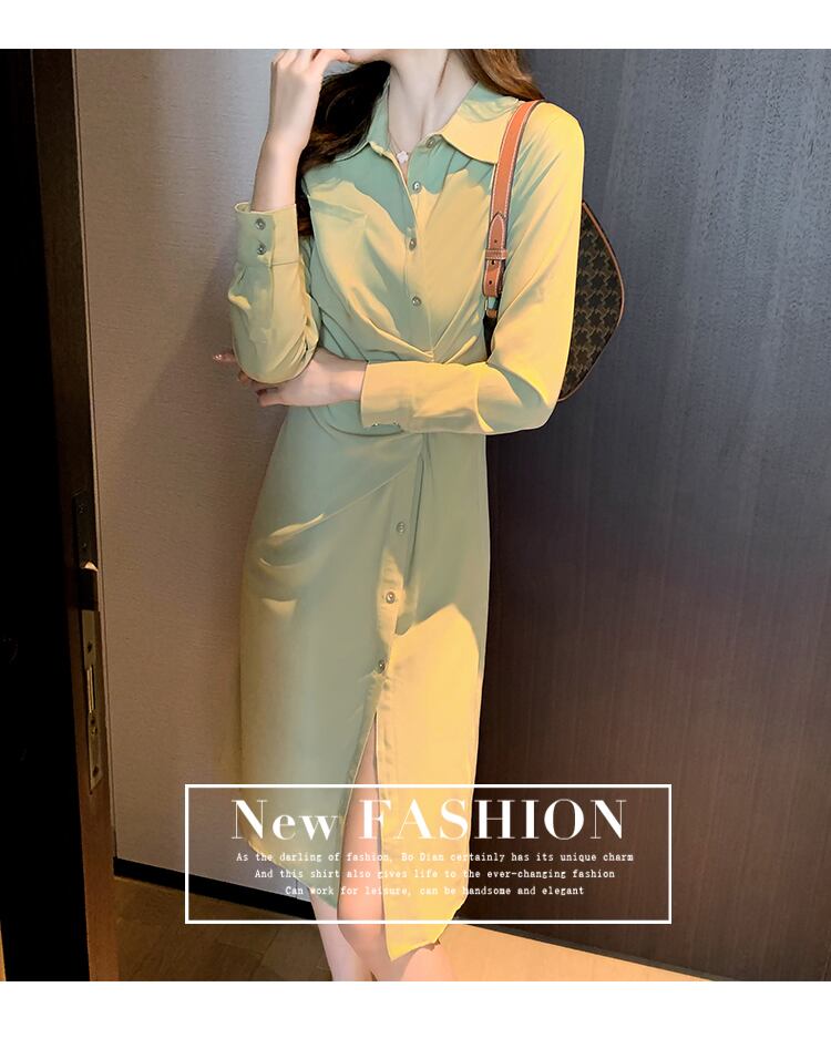 2021年秋新しいフレンチシックなデザインのシャツスカートウエストと薄い気質のスプリットシャツドレス オータム 秋物 yingd82568220475