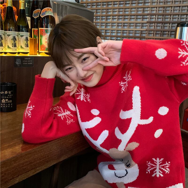 ネットレッドタートルネッククリスマスレッドセーターレディースルーズアウター秋冬新作怠惰風長袖プルオーバーセーターレディース ロング オータム 秋物 ウィンター 冬物 yingd94705729433