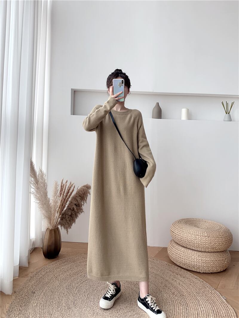 ロングオーバーザニーセータースカートルーズアウターウェアレイジースタイルスモールインサイドニットドレスレディース秋冬 オータム 秋物 ウィンター 冬物 yingd6024521880