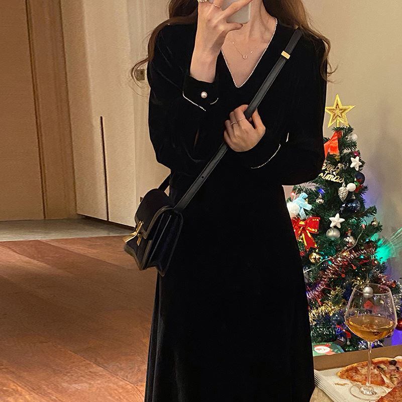 ウエストと薄い気質の冷たい風の女性のハイエンドの軽い豪華なベルベットのドレスとフランスのレトロなヘップバーンドレス yingd51009818093