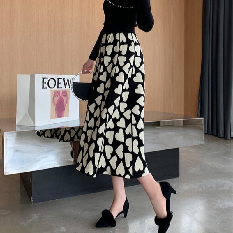 ニットウールミドル丈スカートレディース2021年秋冬新作スタイル太めハイウエスト薄手ニットラブスウィングスカート ハイウェスト オータム 秋物 ウィンター 冬物 yingd87766604286