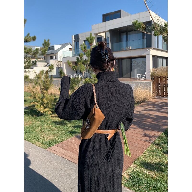 -首のひねりを厚くした長い膝上セータースカートルーズで薄いシックなハイエンドニットドレス女性のロングスカート yingd77535954518