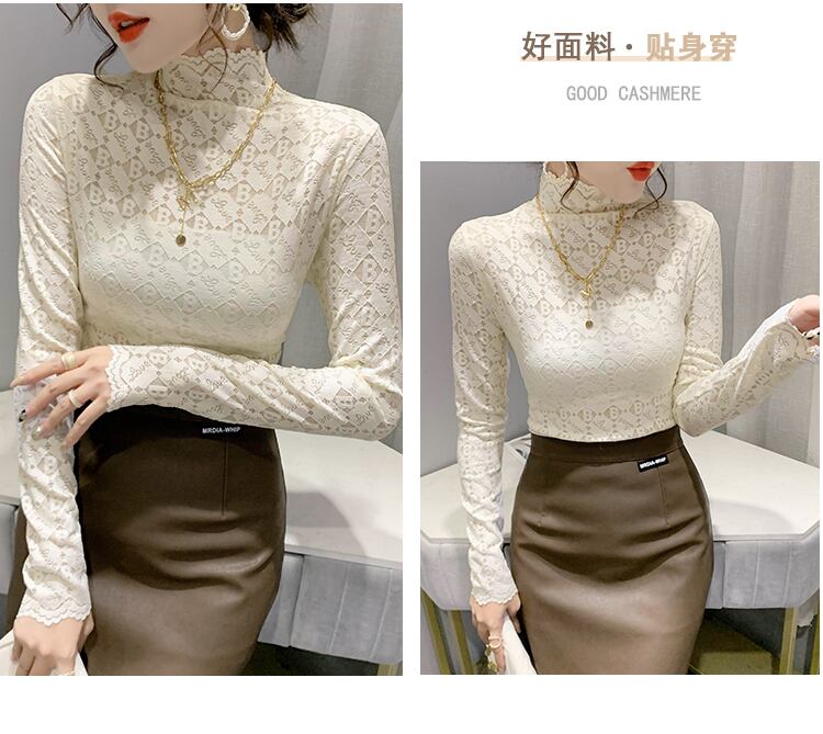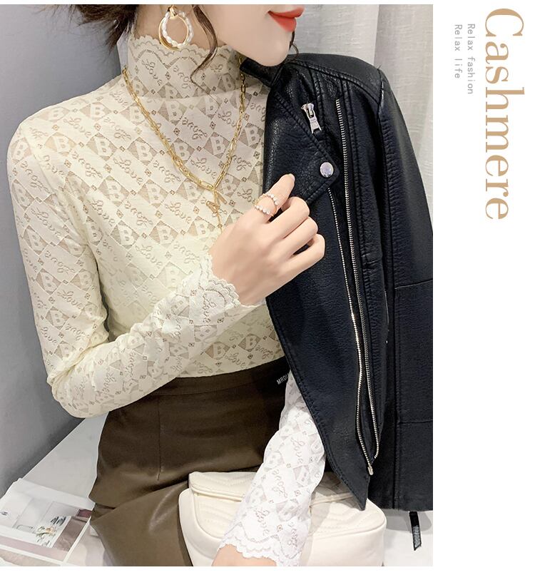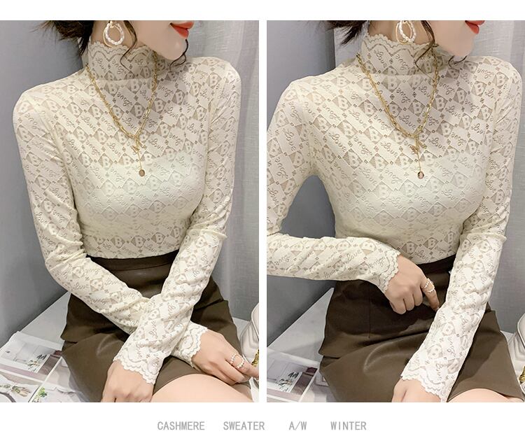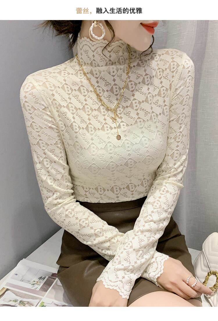 -ネックレースホローメッシュボトミングシャツレディース秋冬新作デザインセンスの小柄な着こなし、スリムな長袖トップスがトレンド ロング オータム 秋物 ウィンター 冬物 yingd64967356321