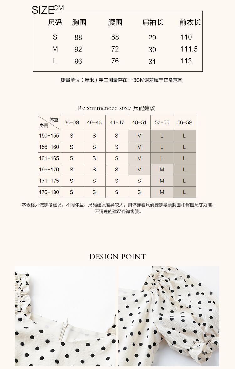 フランスのレトロな優しいスタイルのベルフラワーティーブレイクドレスデザインセンスウエストスクエアネックパフスリーブプリント水玉ドレス夏 サマー 夏物 フラワーデザイン スクウェア yingd79116953967