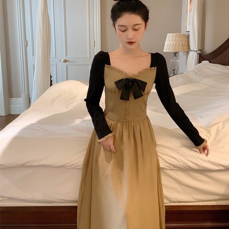 冷風女性の高級感高級感ライトウエストウエスト薄気質ロイヤルシスターフライドストリートニットステッチドレスレディース秋冬 オータム 秋物 ウィンター 冬物 yingd52881695514