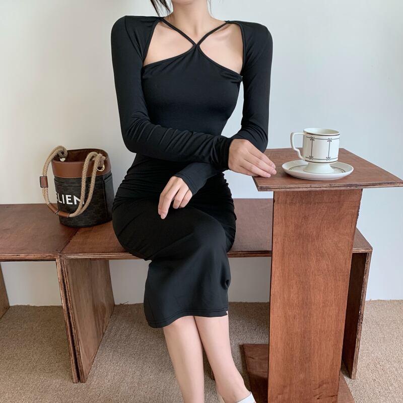 フランスのレトロなヘップバーンスタイルのリトルブラックドレスハイエンドデザインセンスクロスセクシーロイヤルシスターライト成熟したスタイルのドレス女性初秋 オータム 秋物 yingd82754122237