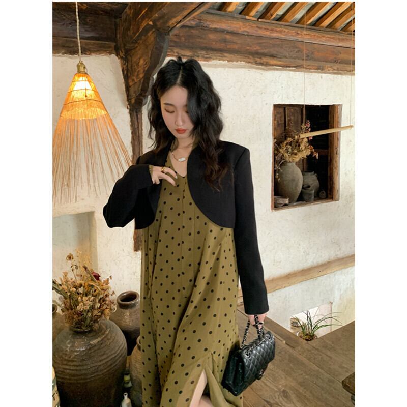 2021年秋新作レディースフレンチコールドウィンド婦人服ハイエンドライトラグジュアリーデザインセンススプリット水玉ドレス オータム 秋物 yingd37619831520