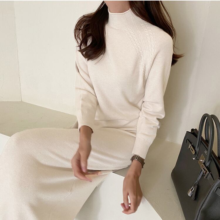ロングオーバーザニーセータードレスフレンチジェントルスタイルティーブレイクルーズストレートニットドレスレディース秋冬ロングスカート オータム 秋物 ウィンター 冬物 yingd3954870438