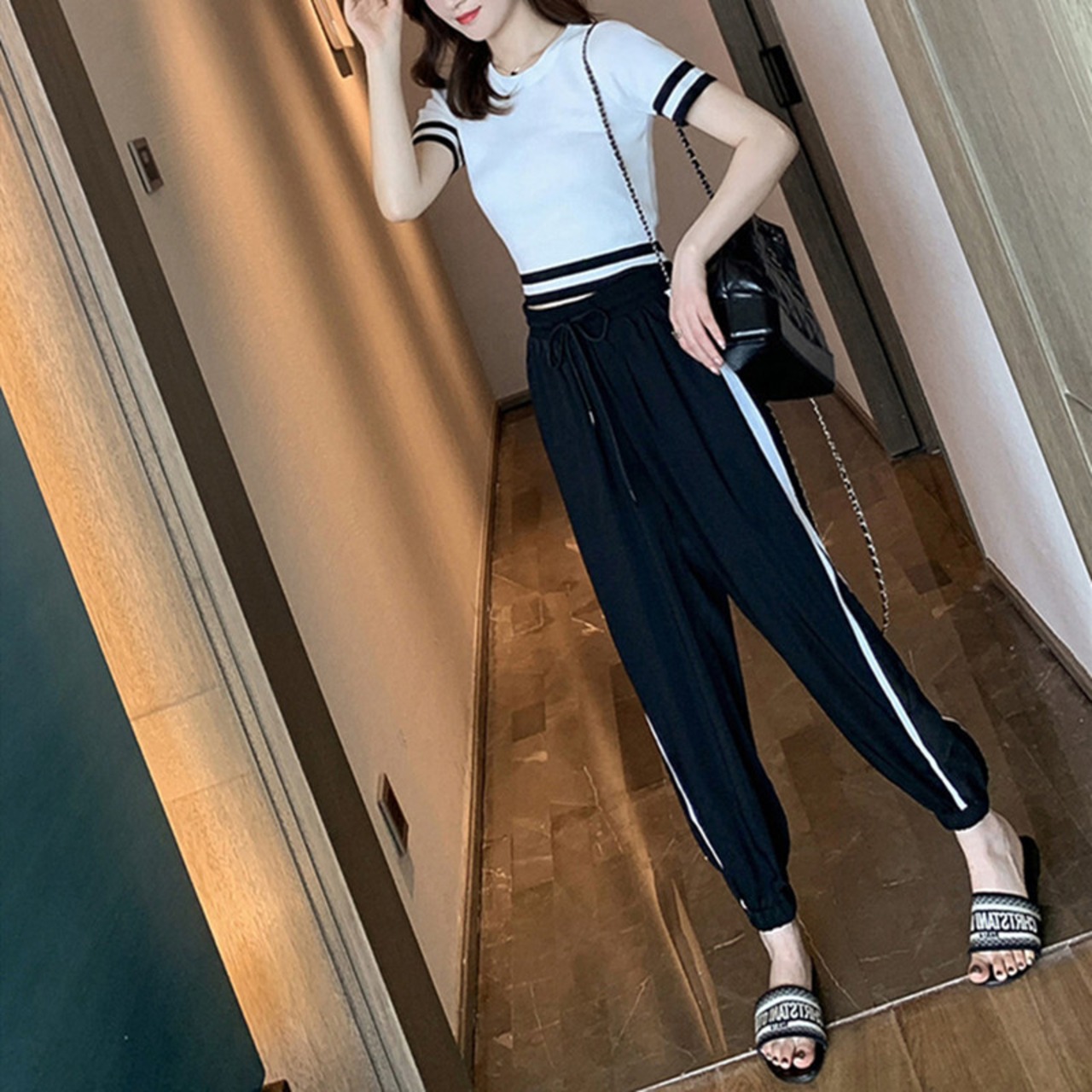 サマードレス2020ニュースーツレディースカジュアルファッションウエスタンスタイルの年齢を減らしてスリムにするウエストレストップハーレムパンツツーピーストレンディ 夏物 yingd34036453044
