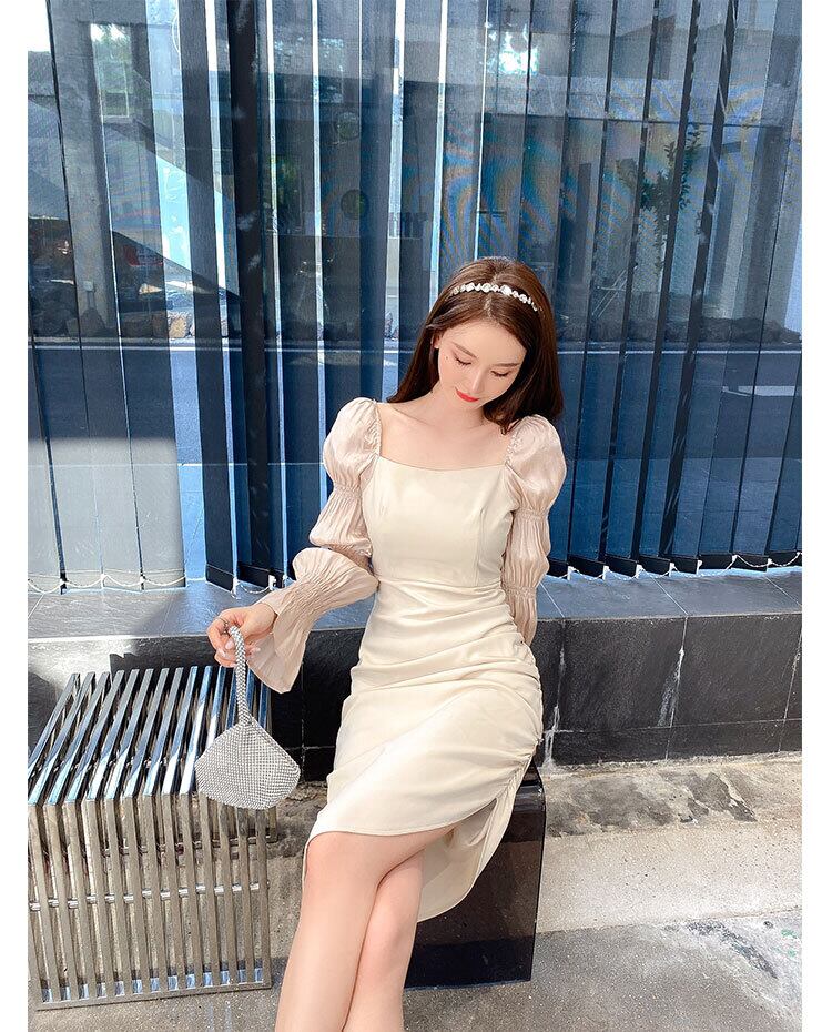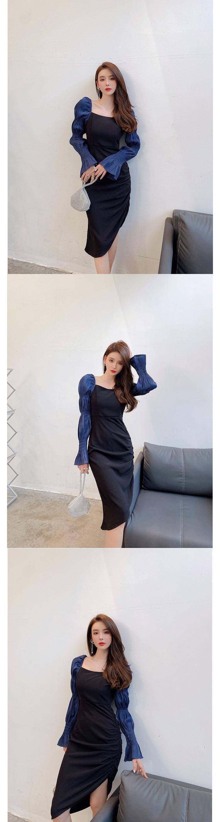 2021年秋新しいクールウィンドレディースハイエンドライトラグジュアリーデザインプリーツスクエアカラーイレギュラードレス オータム 秋物 スクウェア yingd69861282043