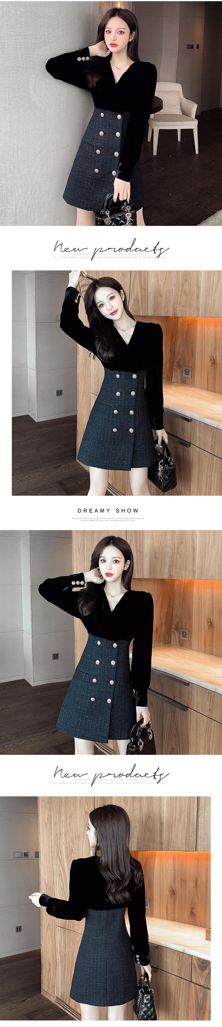 2021年春の新しいフレンチレトロヘップバーンスタイルリトルブラックドレス気質ライトラグジュアリーレディースセクシーVネックドレス スプリング 春物 yingd50940133254